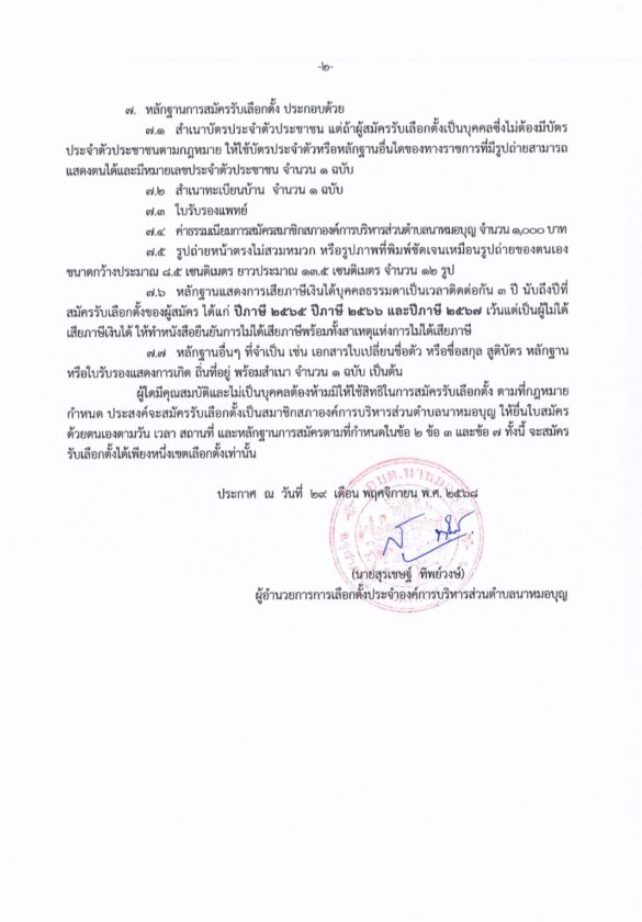 ประกาศเรื่องให้มีการการเลือกตั้งนายกอบต.นาหมอบุญ