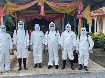 วันที่ ๓ พฤษภาคม ๒๕๖๔ อบต.นาหมอบุญ จัดชุดปฏิบัติการป้องกันโรคติดเชื้อไวรัสโคโรนา 2019 (COVID-19) ชุดที่ ๑ และชุดที่ ๒ ลงพื้นที่เพื่อฉีดพ่นยาฆ่าเชื้อในสถานที่ต่าง ๆ ในตำบลนาหมอบุญ