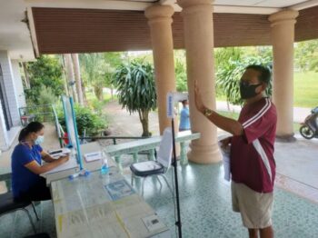วันที่ ๓ – ๖ พฤษภาคม ๒๕๖๔ อบต.นาหมอบุญ ได้มอบเครื่องวัดอุณหภูมิแบบขาตั้ง ให้แก่ผู้นำท้องที่ เพื่อนำไปใช้ในการป้องกันโรคติดเชื้อไวรัสโคโรนา 2019 (COVID-19)
